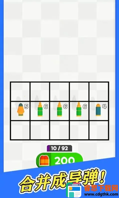 1、操作简单轻松上手:只需拖拽子弹移动位置,若拖到已有子弹的格子上,两者就会融合升级,极易操作。