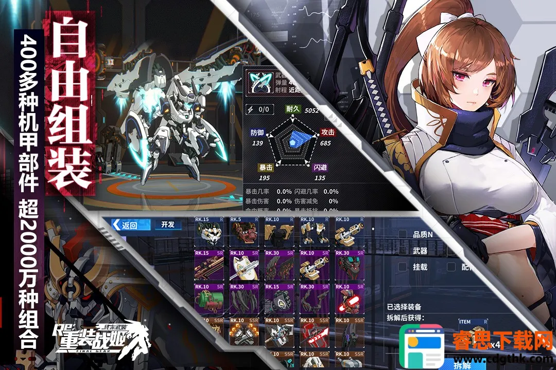 1. 超自由DIY机甲组装:可从敌方夺取部件用于自身机体组装,打造个性机体。凑齐特定部件能幻化为角色专用机体,还可变形。装备直接掉落,能随时更换,打造专属战姬队伍。
