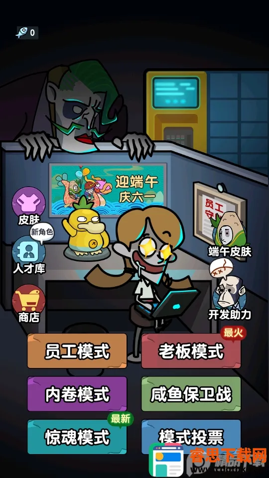 躺平摸鱼之王绿色钥匙版是一款以办公室为背景的休闲塔防游戏。玩家扮演摸鱼员工,躲避老板怒火,通过摸鱼赚金币布置防御设施。玩法新颖,画面高清,角色多样,有暗黑风格,道具丰富,能自由搭建防御体系。
