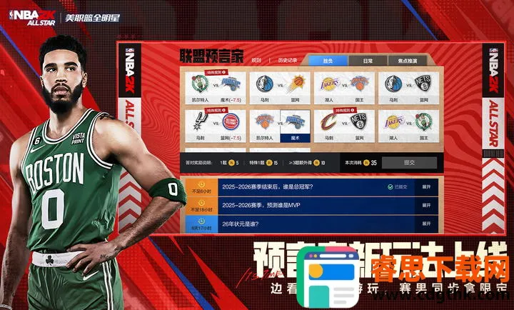 美职篮全明星-NBA2K是NBA正版授权、2K团队与腾讯联合打造的篮球竞技手游。用全新2K引擎,有真实动捕、丰富球星动作等,还有新徽章系统,多种战术,不断更新特性,能让玩家畅享赛场体验。