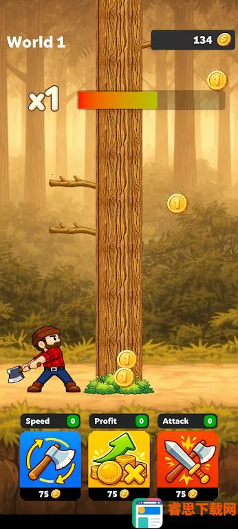 1. 放置成长:伐木工自动砍伐,离线也能持续,放置速度、利润倍增、攻击力等属性可不断提升。