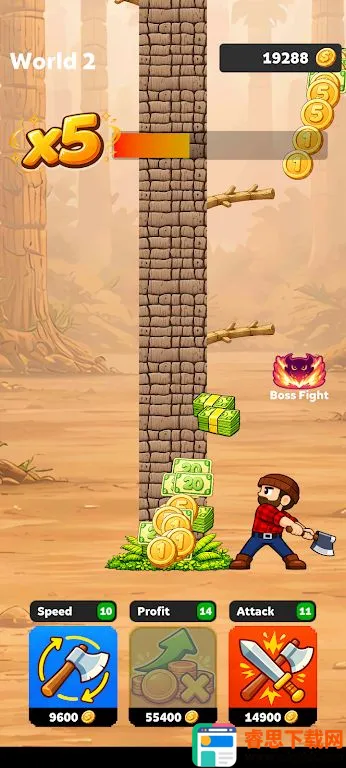 3. 首领挑战:挑战强大首领,解锁新区域,木材价值更高,进度更快,奖励更丰厚。