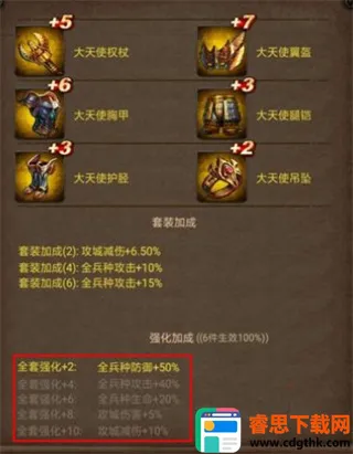 全身6件装备强化+6,则激活全套强化+6,以此类推。