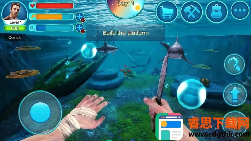 2、玩法丰富多样,要合理利用资源,应对鲨鱼等危险,还要探索海底获取稀有材料打造装备。