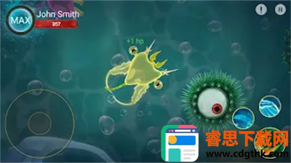 2. 以微生物为起点,在2D平面操作游戏,通过获取多样食物促进孢子成长,吞噬其他孢子获取新能力。