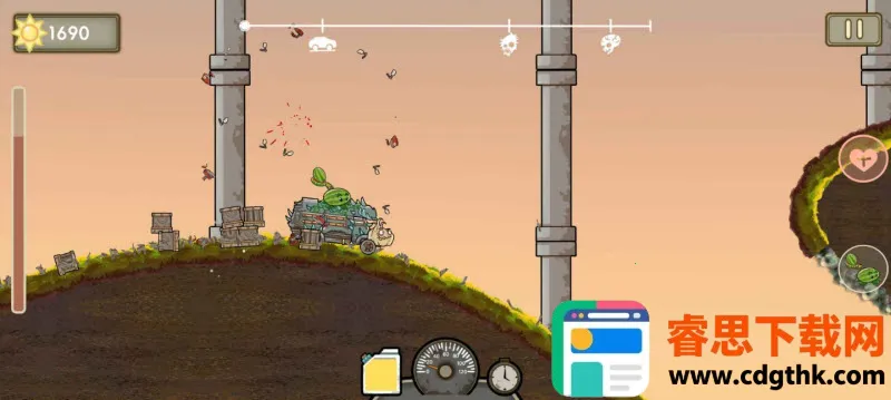 《植物战车》是一款超有趣的休闲益智横版驾驶冒险游戏。它把植物大战僵尸和死亡战车两大经典IP融合在一起,让你在充满活力的卡通世界里,驾驶战车大战僵尸。
