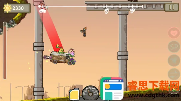 2. 局内击杀僵尸获取阳光,用于购买植物配件升级战车。