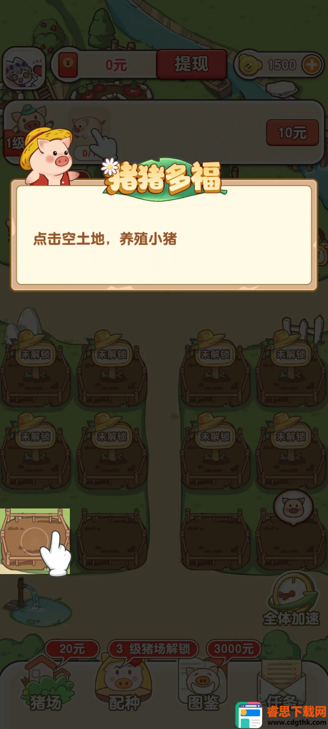 它的玩法轻松简单,点击空土地就能养殖小猪,还能选择加速生长。游戏里有丰富多样的猪种,每种都有独特外形和生长特性。订单任务多样,完成就能得红包,任务驱动让你不断有新目标。而且游戏配乐轻快,音效生动,关卡丰富,可自由挑战不同难度,整体氛围轻松治愈,适合全年龄段玩家,闲暇时玩一玩,既能享受养殖乐趣,又有机会提现实实在在的红包,非常不错。