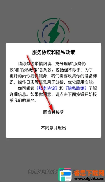 1、打开电工仿真接线助手app,点击同意隐私政策