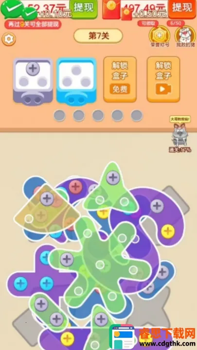 你是否想找一款能轻松解压又有趣味的游戏?那“梦见抓了个猪”这类游戏就很适合你!它是休闲解压型游戏,以三消玩法为主,把相同颜色螺丝放对应位置就能消除,完成消除任务就能套小猪。游戏得分越高,套到的小猪越多,还能用小猪兑换红包奖励。