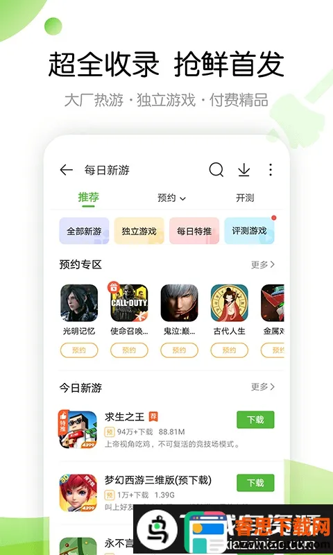 2. 收录多种类型游戏,像生存游戏、网络游戏、在线游戏、单机游戏、女生专区及小游戏等,资源超丰富。