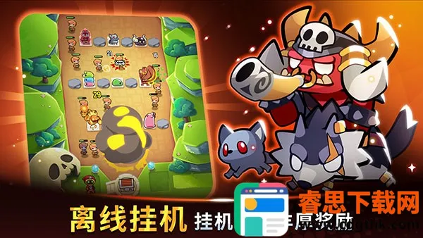 放置挂机轻松推进:支持离线挂机获金币与经验,睡醒可领收益。战斗自动进行,玩家专注战前布阵与升级决策,解放双手。适合通勤碎片时间游玩,无强制在线打卡要求。