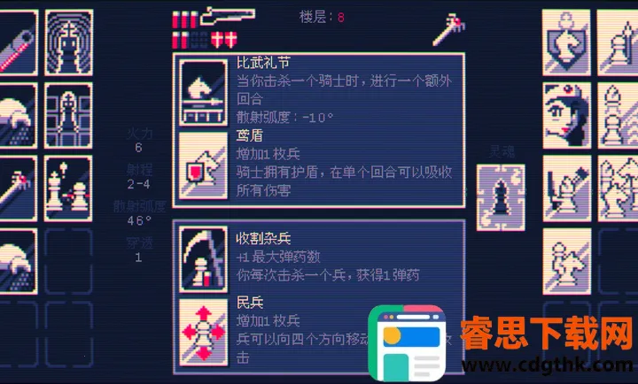 4. 升级系统:每一层结束可从两组随机组合中选择,让自己和敌方都获得升级,增添游戏的变化性和挑战性。