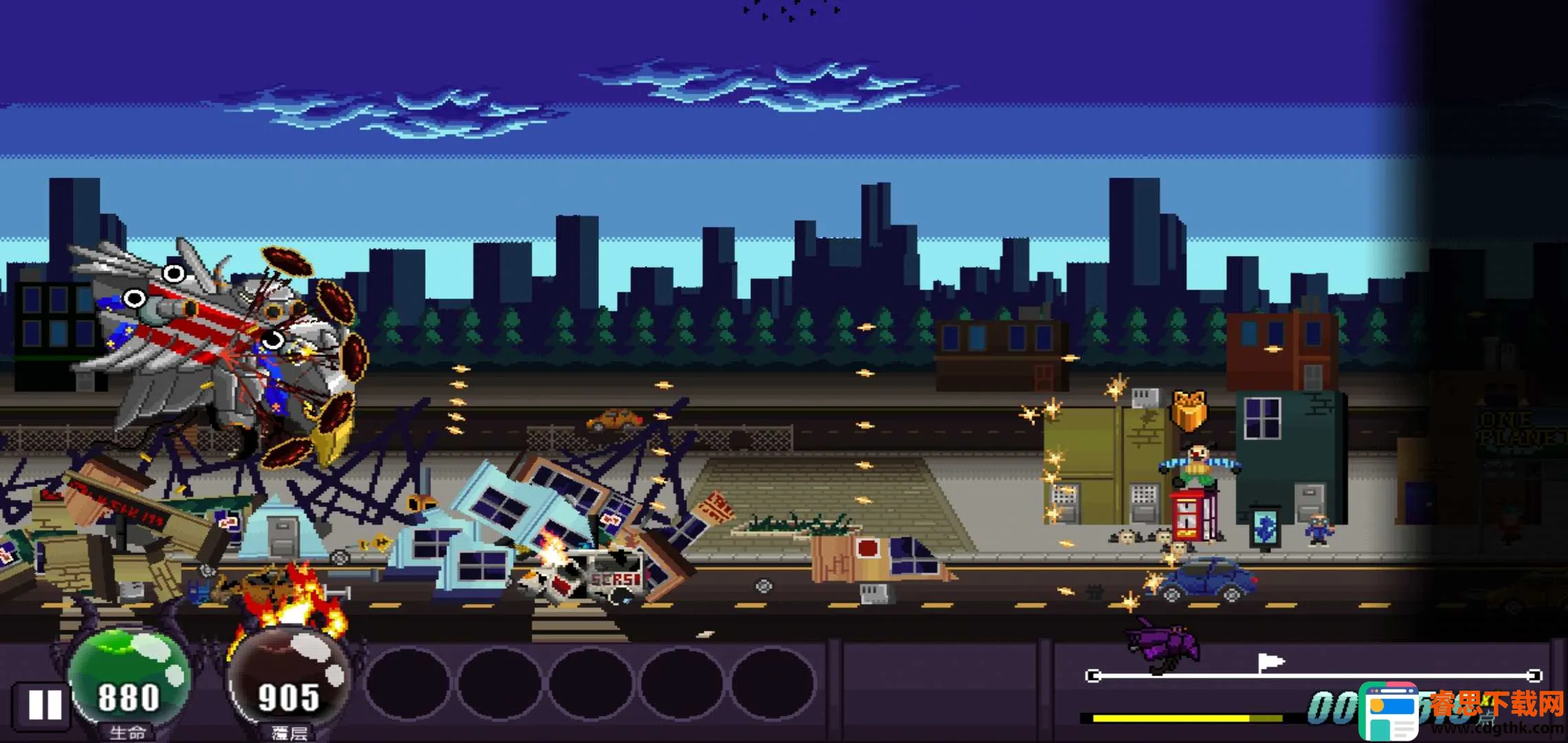 1. 拥有精心设计的像素风场景,风格各异,能带你开启破坏狂欢之旅。