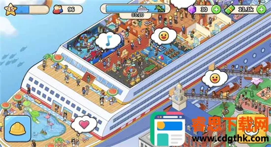 1、打造梦幻游轮:从普通客舱起步,逐步建设成豪华游轮,见证游轮从无到有、发展壮大的全过程,体验亲手打造的成就感。