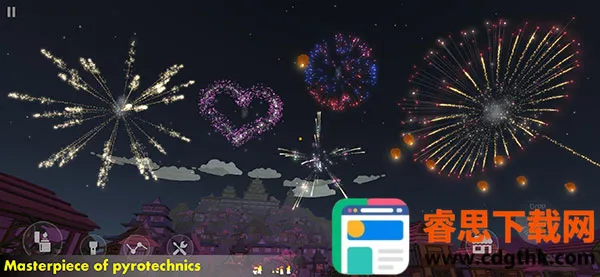 2. 双模式燃放体验:包括FPS模式和构建模式,玩家既能在第一人称视角自由漫步燃放烟花,也能像专业烟火师一样编排烟花表演。