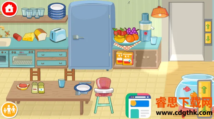 3、可爱画风场景:采用卡通画风,有14个房屋楼层、10个不同角色,呈现客厅、洗衣房等多样场景,还有数百种物品可互动搭配。