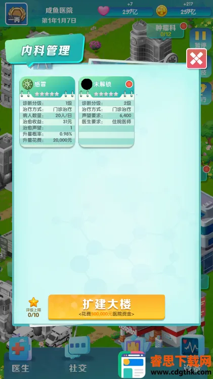 1. 丰富医生类型与招聘方式:游戏内有内科、外科、妇产科、儿科、肿瘤科五种医生类型供招聘。还有社会招聘、名校招聘、猎头招聘三种方式,各有特点,比如社会招聘性价比高,名校招聘适合早期,猎头招聘可应急但成本高,能满足不同阶段需求。