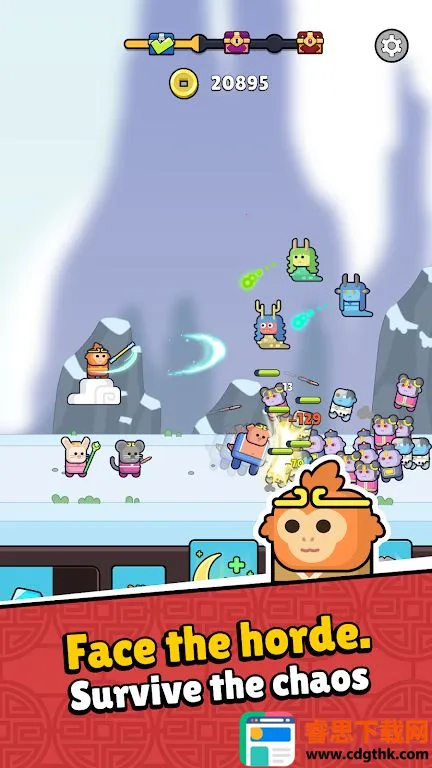 4. 神话策略体验:化身孙悟空成为幸存者,召集英雄击退敌人。探索大陆时消灭敌人,战斗中能用酷炫武器法术和机制定制英雄,乐趣无穷。