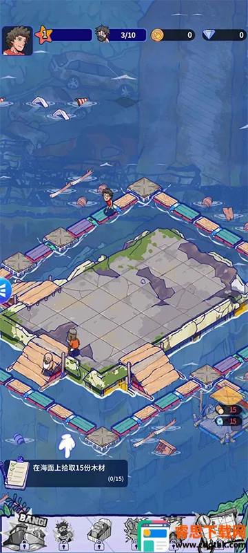 4. 丰富的材料收集与建造:玩家可以在海面漂浮物中收集大量材料,用于扩建避难所打造生活设施,不同建筑有不同功能,可依需求逐步解锁,构建属于自己的海上基地。