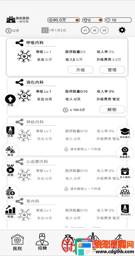 1. 自由建造医院:可建造医生办公室、诊断室、治疗中心和实验室等,还能扩建并升级医院,与朋友分享。