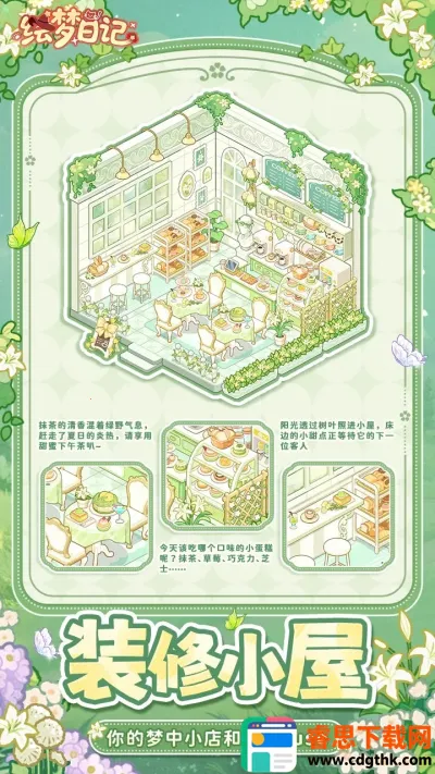 4、治愈游戏氛围:治愈系画风搭配舒缓音乐,营造轻松愉悦氛围,玩起来超级轻松解压,让玩家在忙碌经营之余享受装扮乐趣,放松心情。