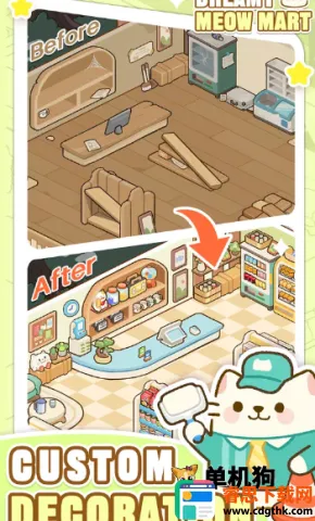 3. 游戏中有很多升级任务,完成可推动超市新发展,还有诸多性格各异的猫咪NPC,能展开温馨互动。