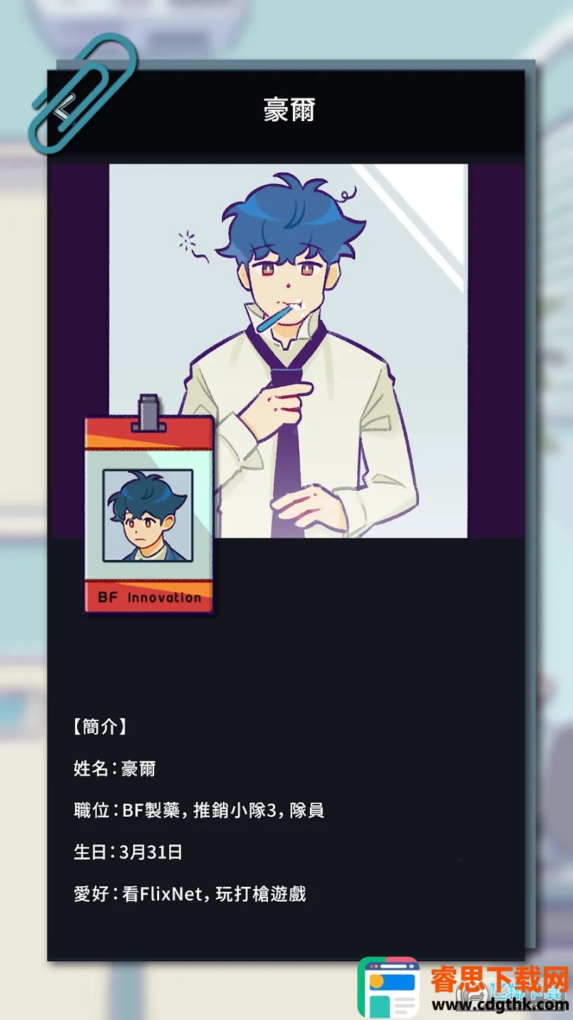 嘿,你在找能体验独特职场生活的游戏吗?那可一定要试试这款超有趣的游戏!它以职场为背景,你将扮演制药公司新人销售豪尔,身处于满是半兽人同事的环境中。在这里,你能自由模拟真实办公室生活,和同事和谐相处,放松身心与压力。游戏采用短信风格的互动视觉小说玩法,通过扣人心弦的对话推进剧情。期间有超多选择,每个都影响剧情发展和结局走向,比如小组解散危机时的抉择,能带你走向不同道路。还有数十种成就等你解锁,随着剧情发展满足成就可获丰富道具奖励。而且它有自由存档功能,不用担心进度丢失。其立绘是舒适清新的水彩风,角色设计生动独特,给你带来精彩舒适的视觉效果。快来下载,开启这场特别的职场冒险吧!