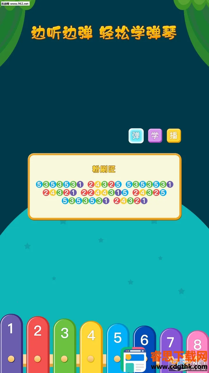 2. 采用七彩简谱与分小节演奏设计,通过逐步练习的方式,让孩子能够快速掌握弹奏技巧,强化数字记忆的同时培养基础乐感。