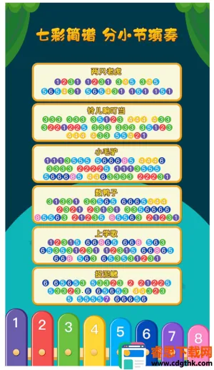 2. 七彩简谱与分小节演奏设计,助孩子快速掌握弹奏技巧。