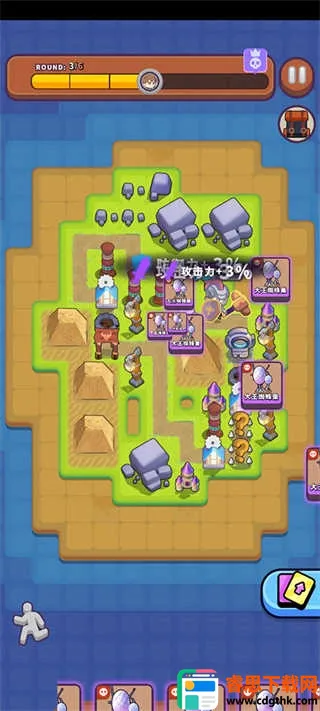 4. 施展地块策略,提升勇者实力摆放岩石砂砾树林等不同的地块,为正在冒险中的勇者增加各种属性buff,帮助他们完成怪物挑战。同时,不同的地块可以相互组合,合成升级,解锁更强大的能力。