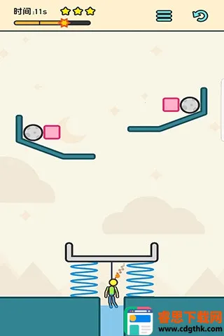 4. 拥有众多精心设计的关卡,满星通过可解锁更多道具及皮肤,玩法丰富多样,还有搞怪的火柴人造型能摆拍,是一款休闲益智且充满乐趣的小游戏,兼具时间限制与星星评级。