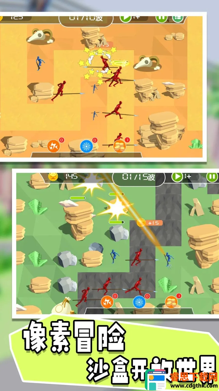 骑士生存进化2025官方最新版本是一款策略战争游戏。玩家操控小人守护基地,搭建防御击退入侵者。要合理安排战术,利用地形和武器,在不同主题场景中作战,通过多种玩法提升实力,体验精彩刺激的战斗。