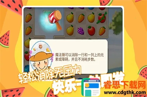 果缤纷乐园是北京快博科斯信息技术有限公司打造的消除休闲益智游戏。玩家连接消除相同水果获分数,有丰富关卡,清新画风,操作简单,还有道具助通关,能让人放松心情,享受消除乐趣。