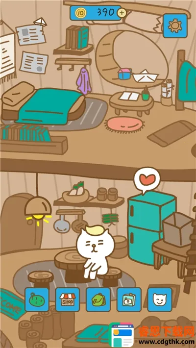 2. 拥有独特手绘卡通风格背景,融合放置与养成趣味玩法,新玩家有专属小屋,屋里住着等待出发的旅行猫,任务是悉心照料它,多种模式可探索。