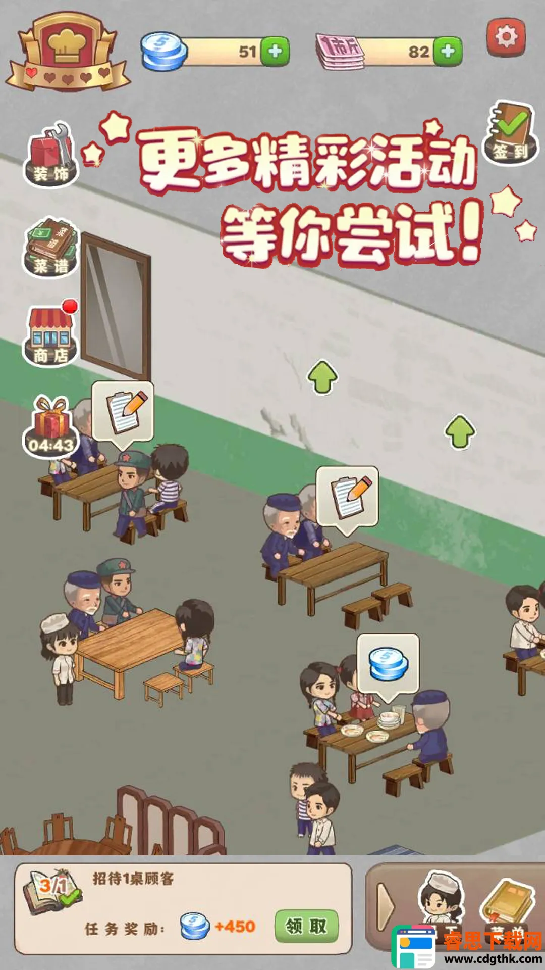 2. 玩法轻松有趣:按照客人点的单子选取食材准备食物,做好后端给顾客完成交易。打理餐厅和后厨,照顾客人需求,成为受欢迎的火锅店主。