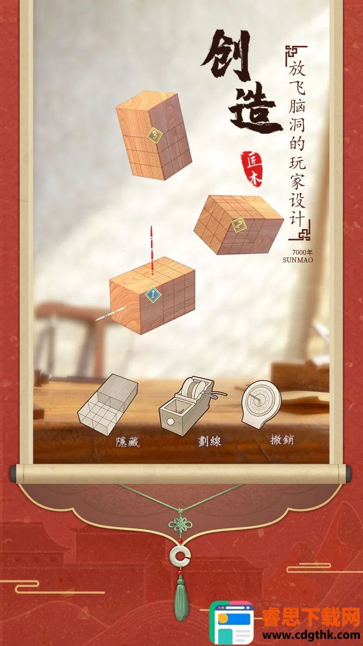 想体验原汁原味的匠木游戏吗?匠木破解版免登录单机就能满足你!无需登录账号,直接开启单机畅玩模式。在这款游戏里,你将沉浸于国风韵味十足的解谜体验。通过观察榫卯图纸,发挥空间想象力,点击消除等简单操作打磨零件,拼合出指定结构,解开空间谜题,感受千年木作结构美学。还能在切磋板块放飞脑洞,设计榫卯关卡或挑战他人创意。馆藏板块则能360度呈现榫卯组合原理,科普榫卯知识与文化。无需繁琐登录,随时随地开启榫卯解谜之旅,尽情享受榫卯文化的魅力,在传统木匠的世界里自由探索,满足你对益智游戏和传统文化体验的双重需求,快来试试吧!