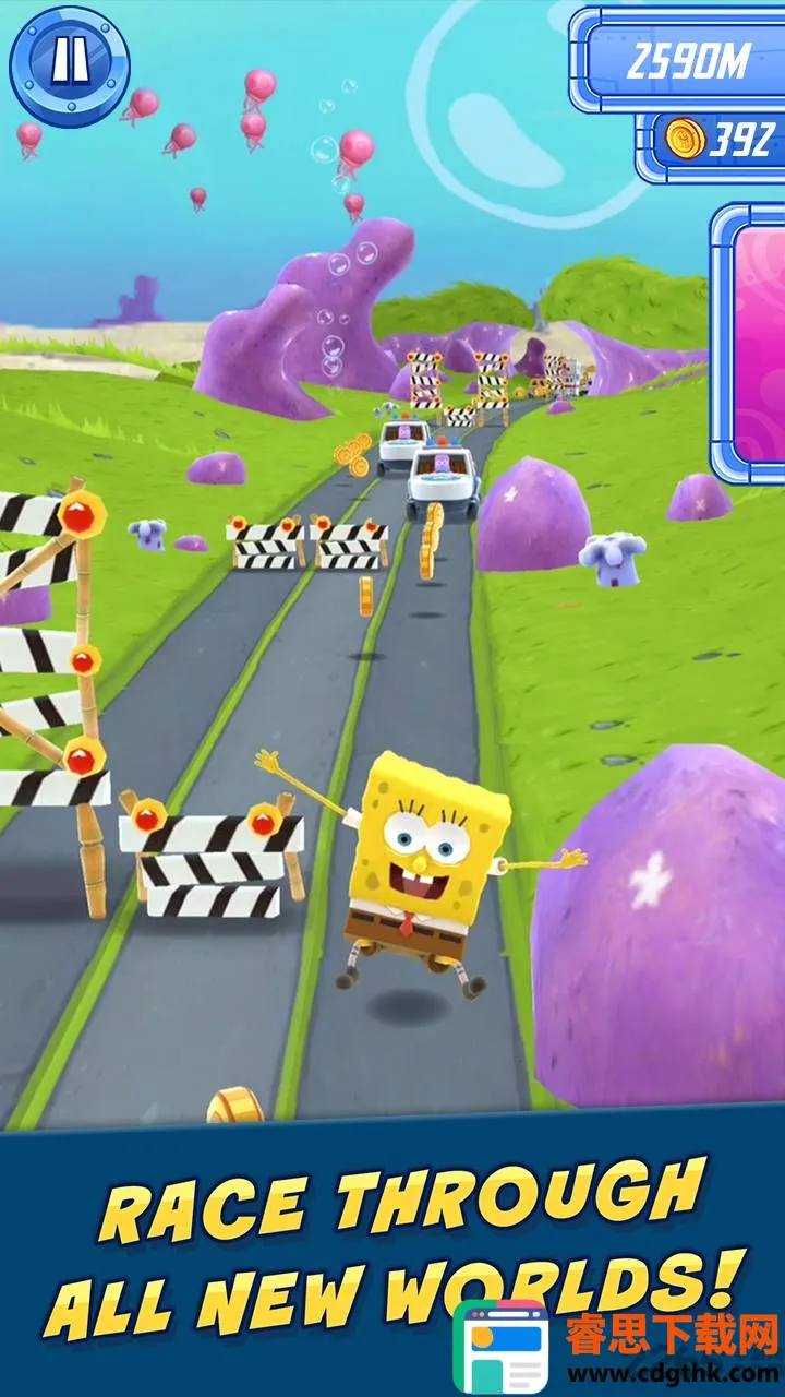 《海绵宝宝跑跑海绵》是一款动作跑酷游戏,画面精致,色彩丰富。操作简单,新手易上手。有竞技模式,无尽跑酷。玩家控制海绵宝宝躲避障碍、收集金币道具,还能解锁新服饰和特殊能力,快来挑战吧!