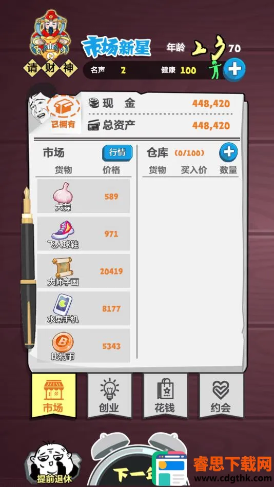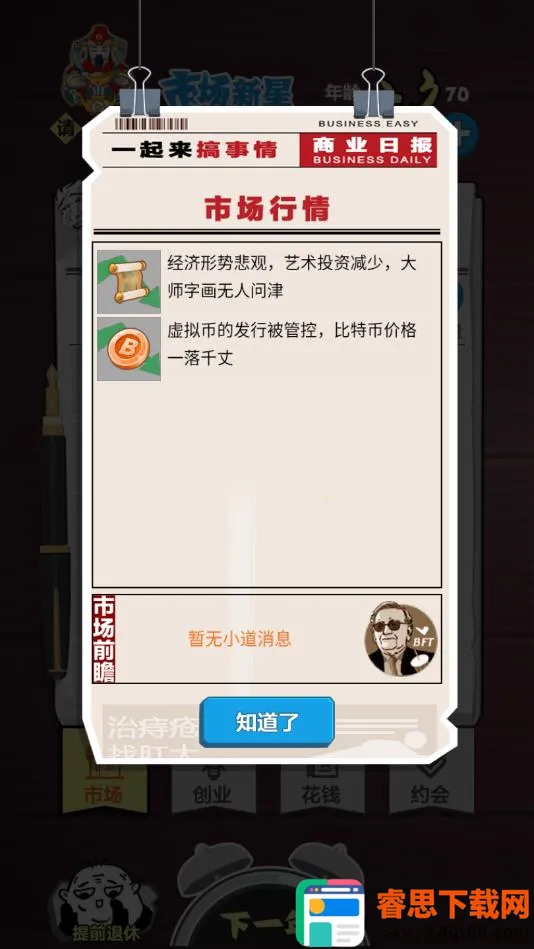 想体验白手起家打造商业帝国的感觉吗?那就来试试《巅峰赢家》吧!在这款模拟经营角色扮演手游里,你将开启属于自己的商业之旅。这里加入了随机系统,每次操盘投资的成功概率受随机数和公司参数影响,特别考验眼光。