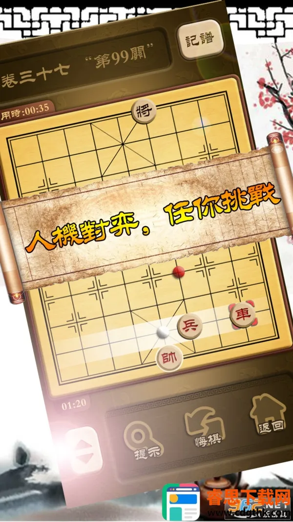 2. 海量残局排局助涨棋力:包含数千盘经典残局排局,供玩家练习各种象棋杀法,并且设有电脑提示功能,让玩家在破解残局中不断提升棋艺。