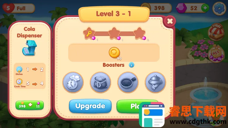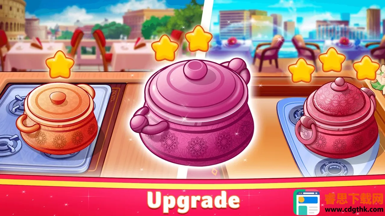 4. 游戏免费玩,无需购买即可完成关卡,还有有趣的厨房升级,能更快烹饪并赚取更多金币,通过升级克服时间管理难度。