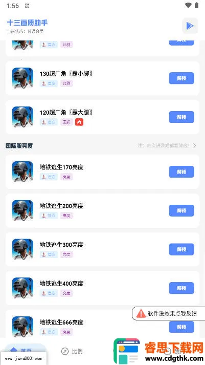 2. 免费且功能丰富:内置多种游戏画质修改工具,全部免费使用。用户可自定义游戏画质,有多种流畅度等级可选,还有超广角助手等实用工具。