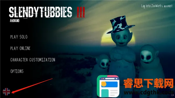 1、由于鬼畜天线宝宝3本身是英文简体,因此我们第一次进入游戏点击左下角的图标;