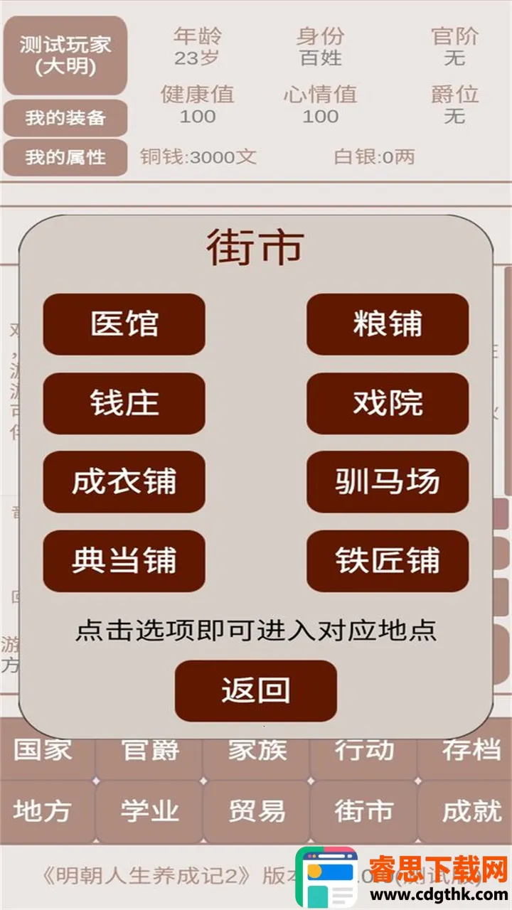 想知道怎么在《明朝人生养成记2》里畅快游玩吗?这款游戏能让你穿越到明朝开启传奇人生。你可以选择入朝为官、投身征战、经商或种田等多条人生道路。