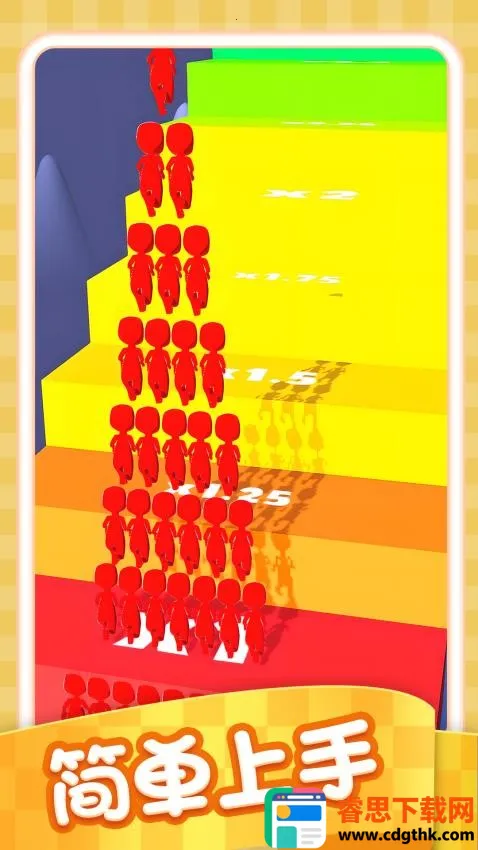 2. 自动前进设定:角色自动前进,玩家只需左右移动火柴人军团,轻松抵达终点,操作简便。