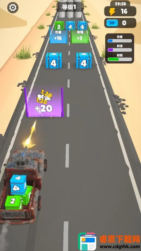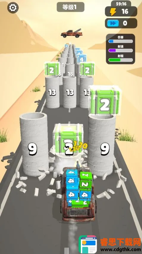 1. 方块拾取收集:众多数字方块随机散落,拾取收集可增强战车性能火力,助你轻松推进挑战。