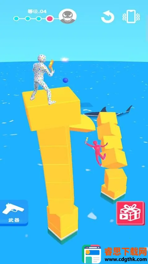 1、游戏玩法丰富多样,玩家不仅能体验射击玩法,还需关注平衡元素,在摇摇欲坠的平台上与实力各异的敌人对抗,乐趣十足。