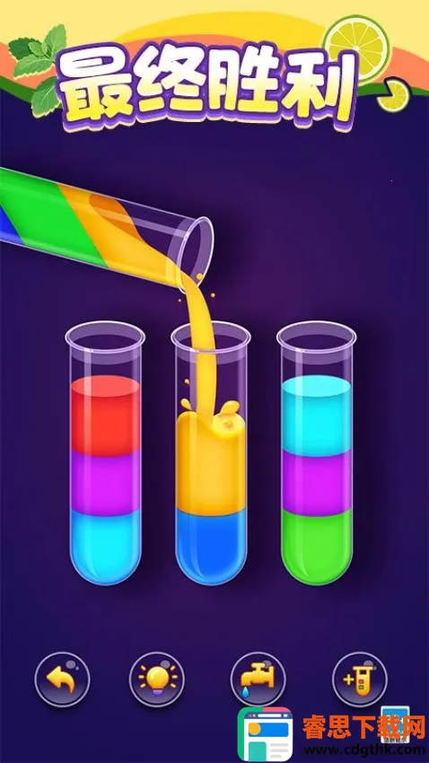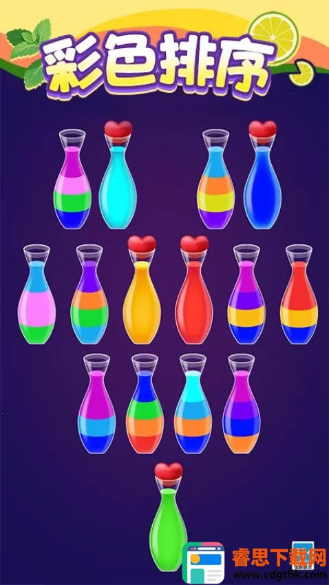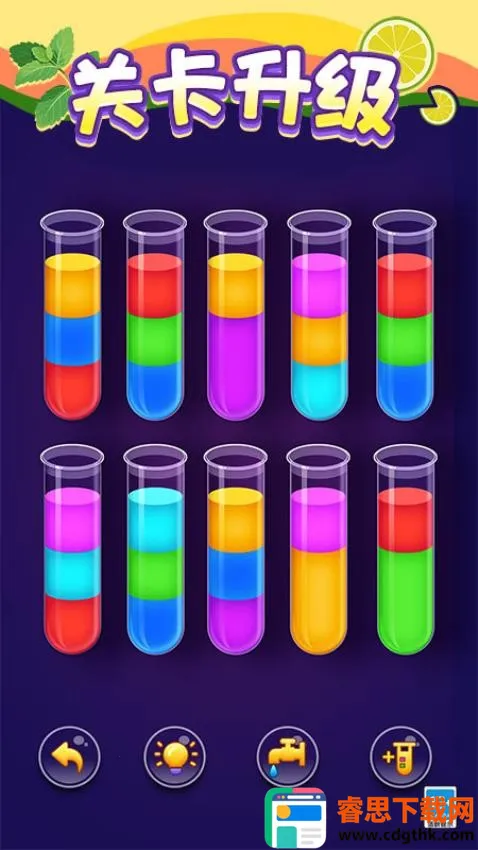 1、色彩缤纷的背景:游戏设置在色彩斑斓的液体世界,背景色彩缤纷。玩家通过简单拖放操作排序液体,将相同颜色完美排序就能完成挑战,沉浸在这独特的视觉体验中。