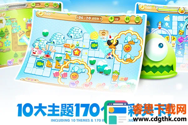 它有创新双出口模式,怪物可能多路来袭,增加了策略难度与挑战性。新增任务系统,每关完成额外任务可获宝石奖励。游戏中合理摆放炮塔,利用加血冰冻等特色道具,就能抵抗并消灭怪物,拯救萝卜。比如在第2关,开局种1飞机和太阳花,先打右边中间松树,有钱升级太阳花,再种2飞机并升到顶级,优先放冰锥。后续根据情况不断调整炮塔布局,就能顺利过关。而且游戏有65个全新关卡分布在4大主题,还有多种模式,碎片时间就能玩,支持GameCenter成就解锁,非常便利,赶紧下载体验吧!