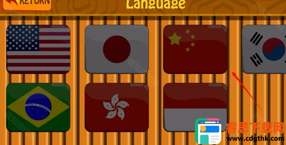 3、最后选择对应的中国国旗就能修改为中文了